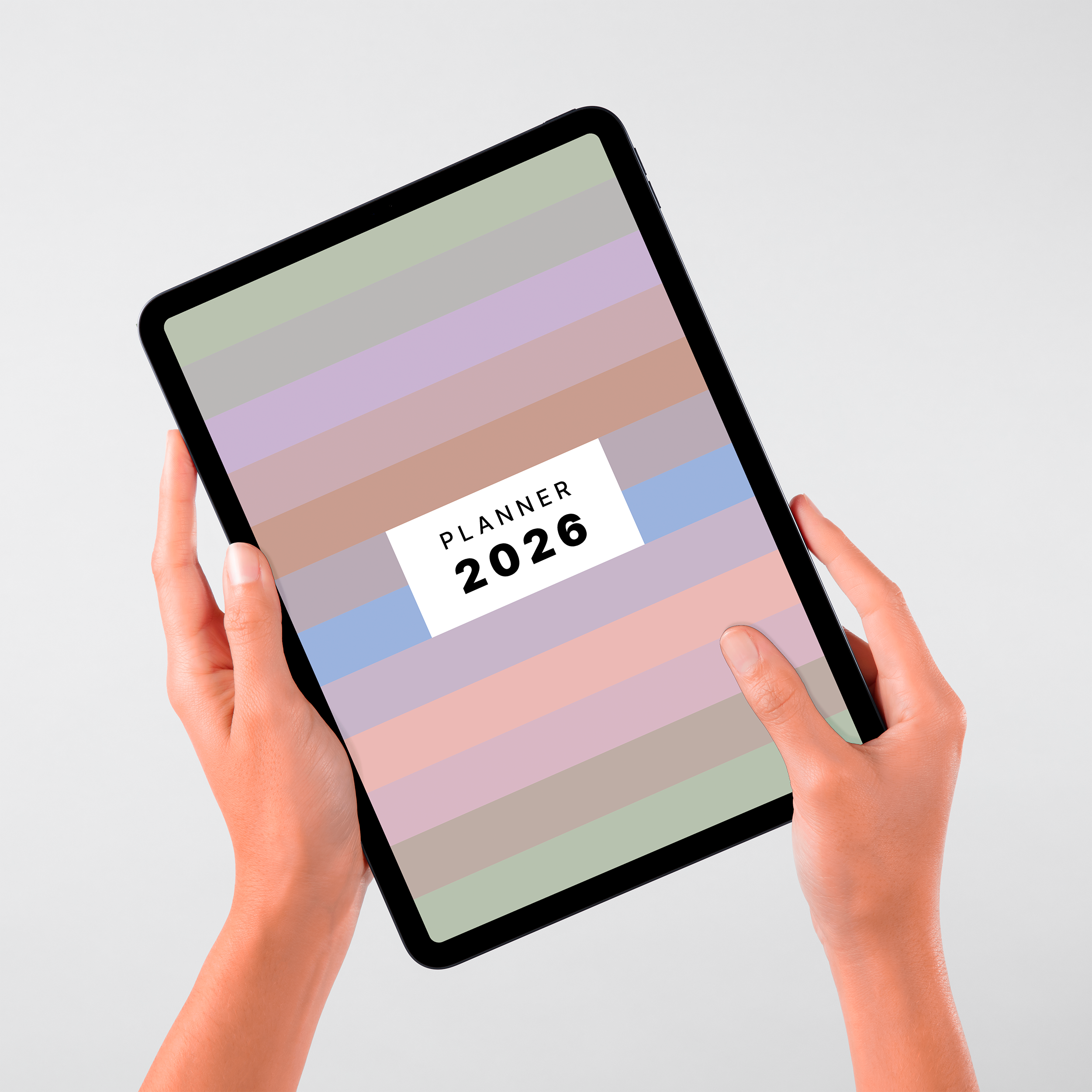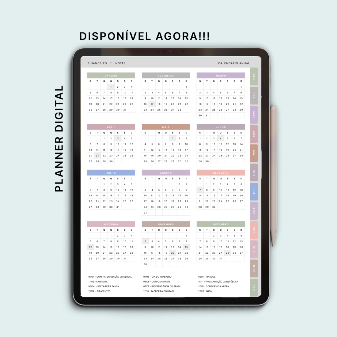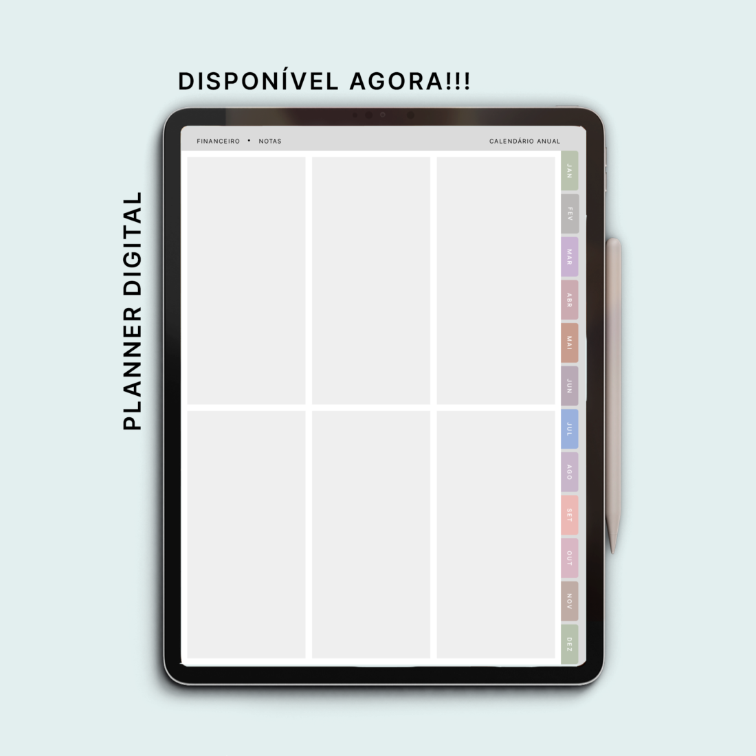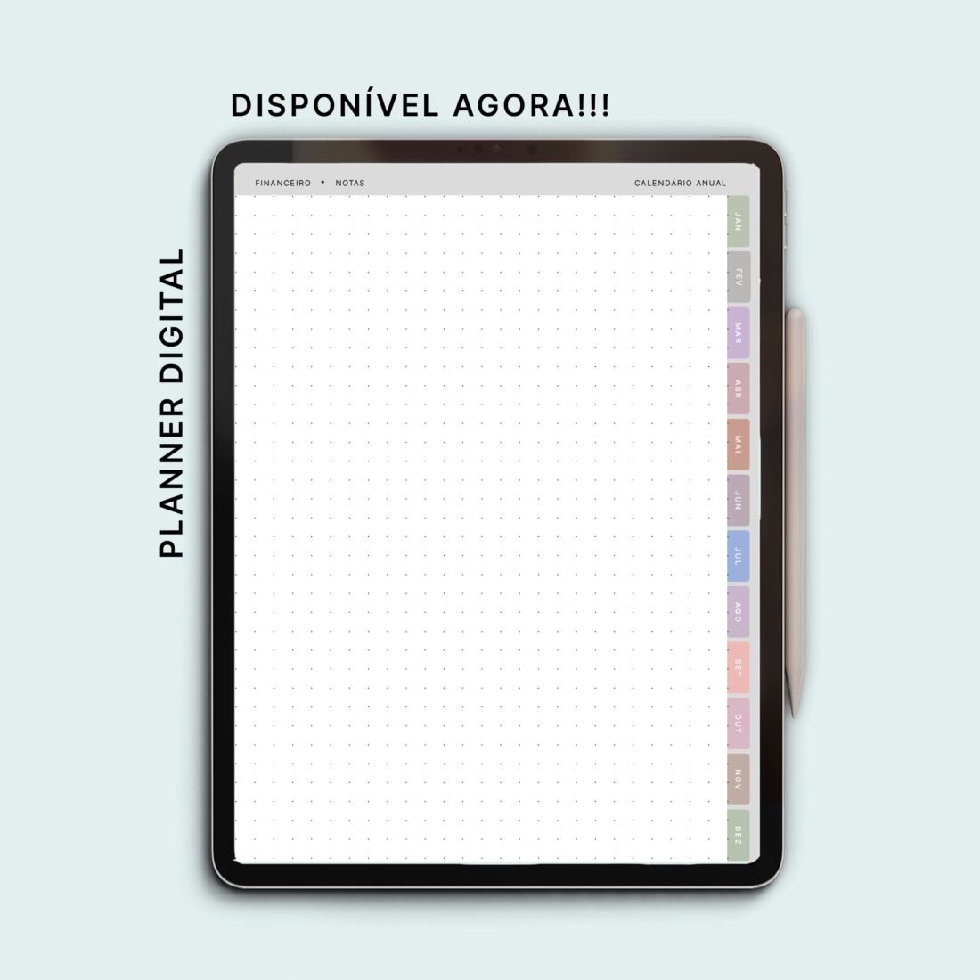 Planner Digital 2026 interativo para iPad e tablets. Organize seu ano sem papel.
