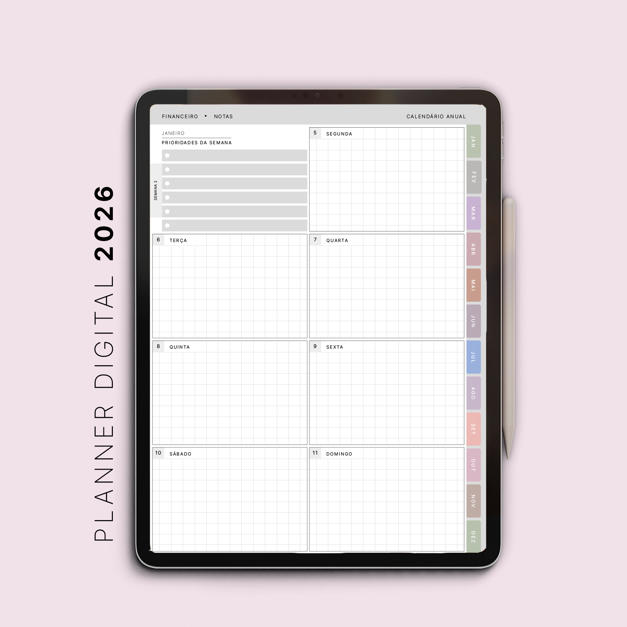 Planner Digital 2026 (vertical e colorido)
